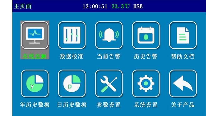 •收敛主机显示界面:历史数据查看、参数设定、数据校准、告警分析、系统设置等。