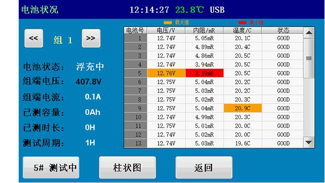 •单体压、内阻、温度等实时数据界面
